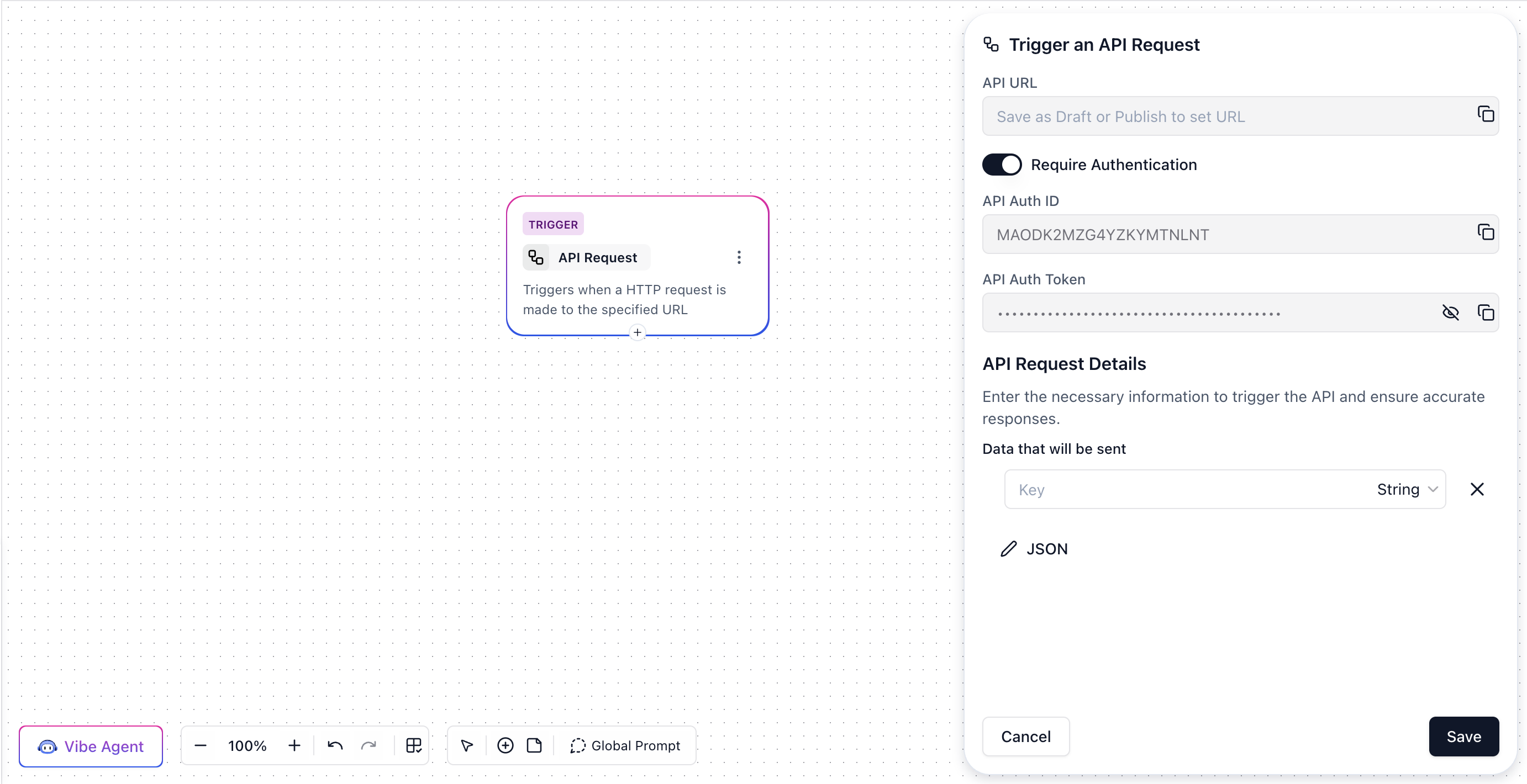 - A form to define input variables—key names and their expected data types, which can be used later in the flow.