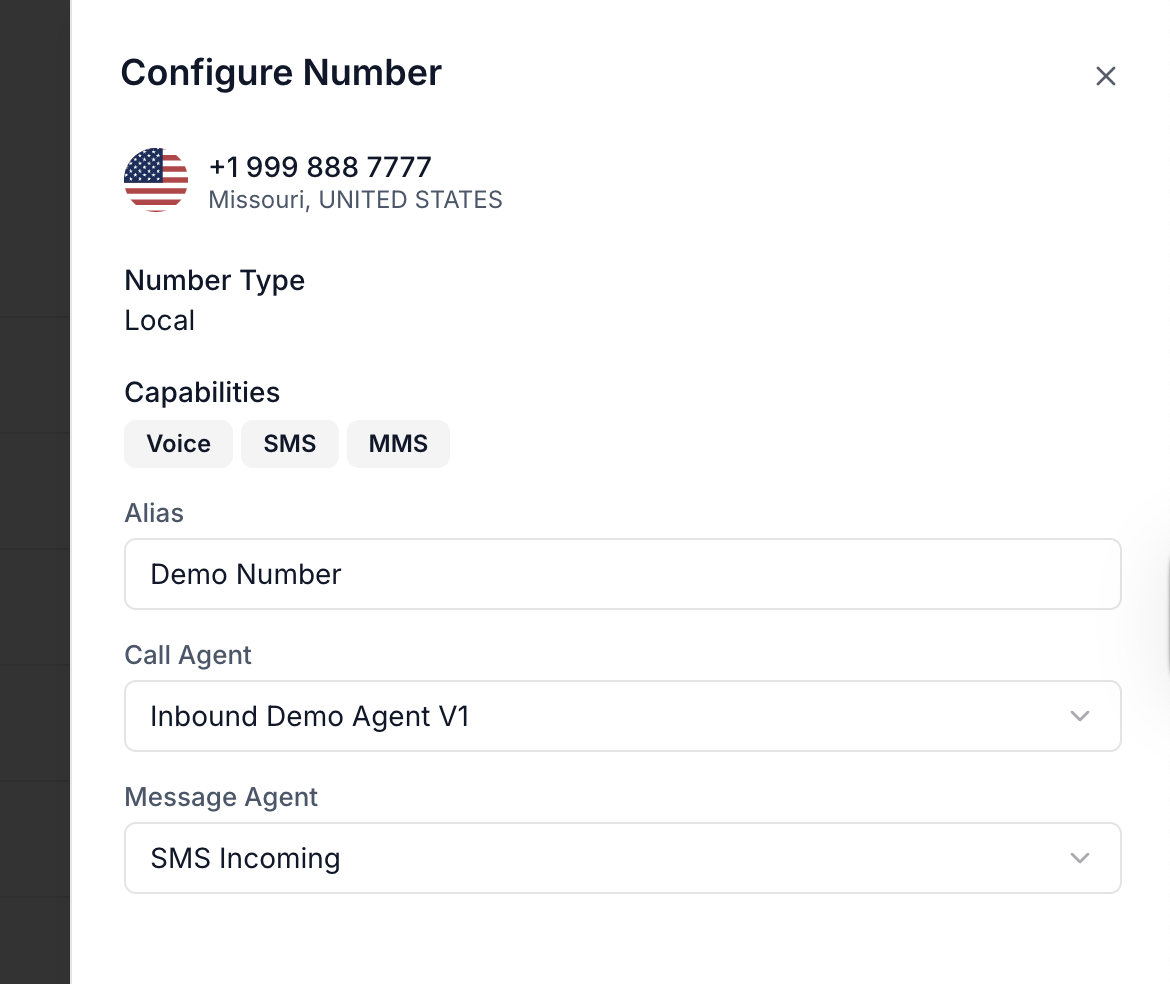 Go to Settings > Phone Numbers to select the phone number where you want the SMS agent to respond to messages.