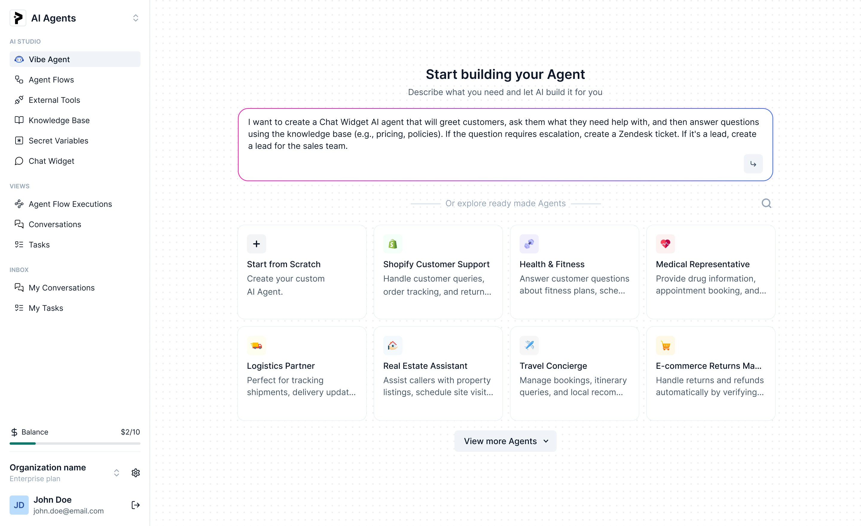 Before building your agent, clearly define the use case and understand the types of inquiries customers will have when they interact with your website’s chat widget.