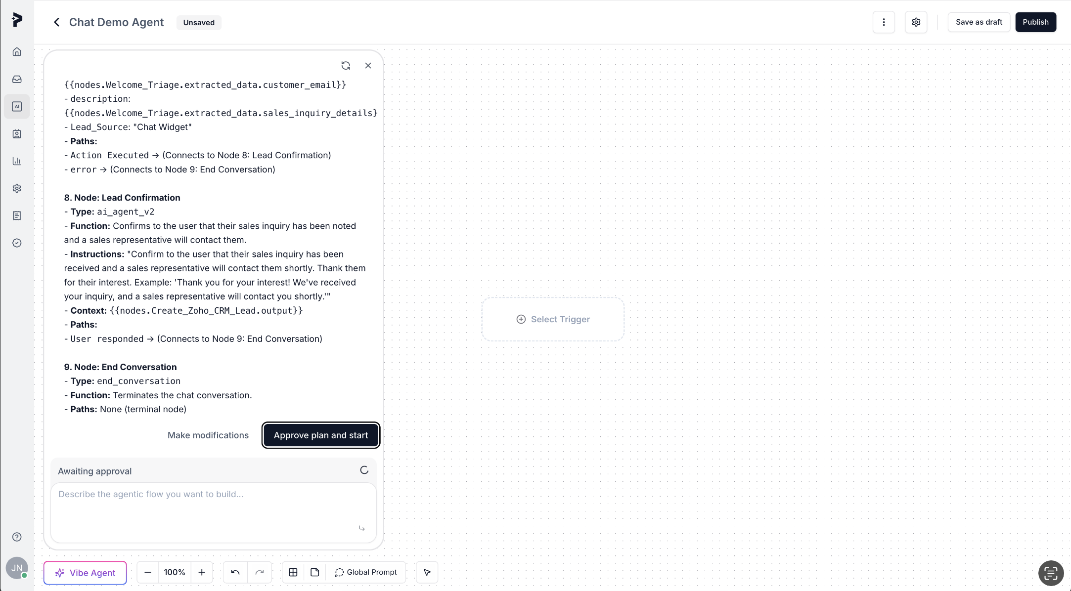 - Provide detailed feedback to Vibe Agent and let it update the flow accordingly.