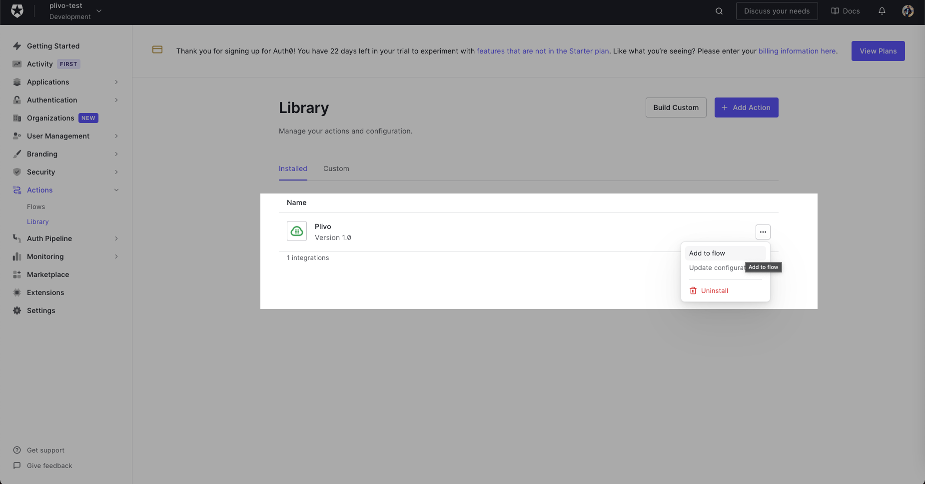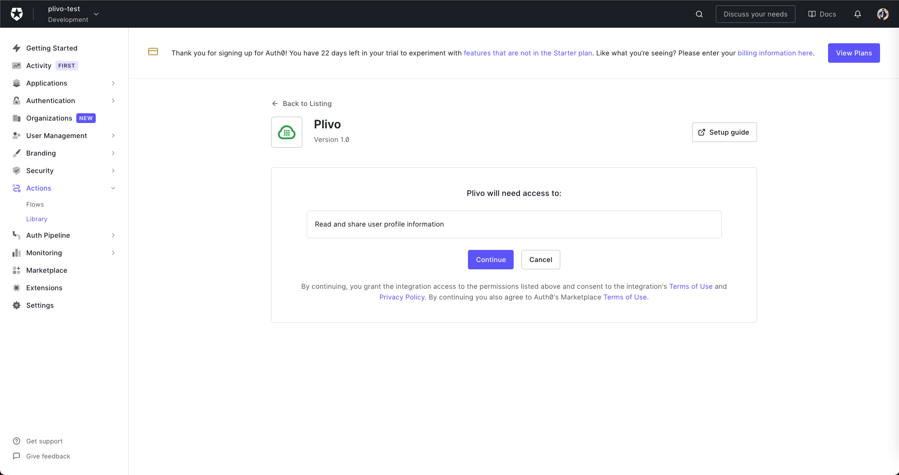 Configure the integration by filling in the fields on the next screen with your Plivo Auth ID and Auth Token and your Plivo phone number.