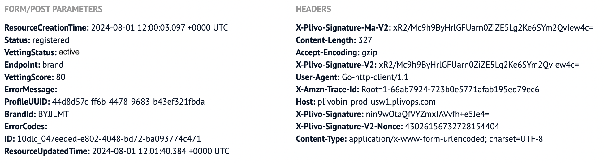 | registered | Brand was registered with TCR. You can now create campaigns using this brand. | |