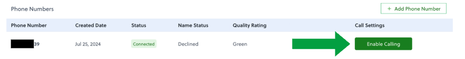 - Click Enable Calling next to your phone number
