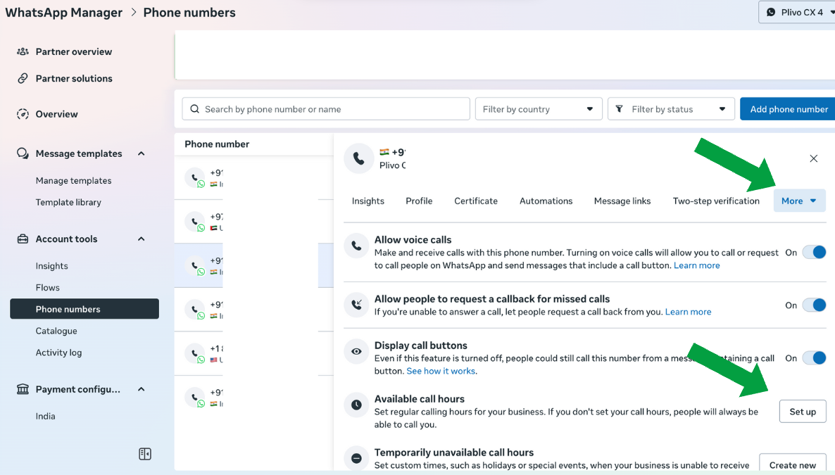 - Open Meta Business Manager → WhatsApp Manager → Phone Numbers