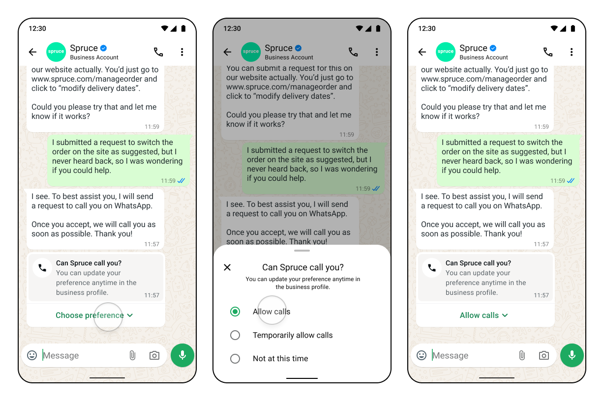 - Call your WhatsApp Business number from any WhatsApp account: