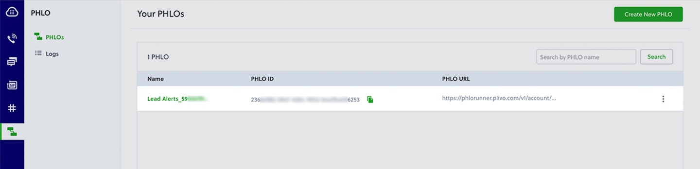 - Click Create New PHLO.