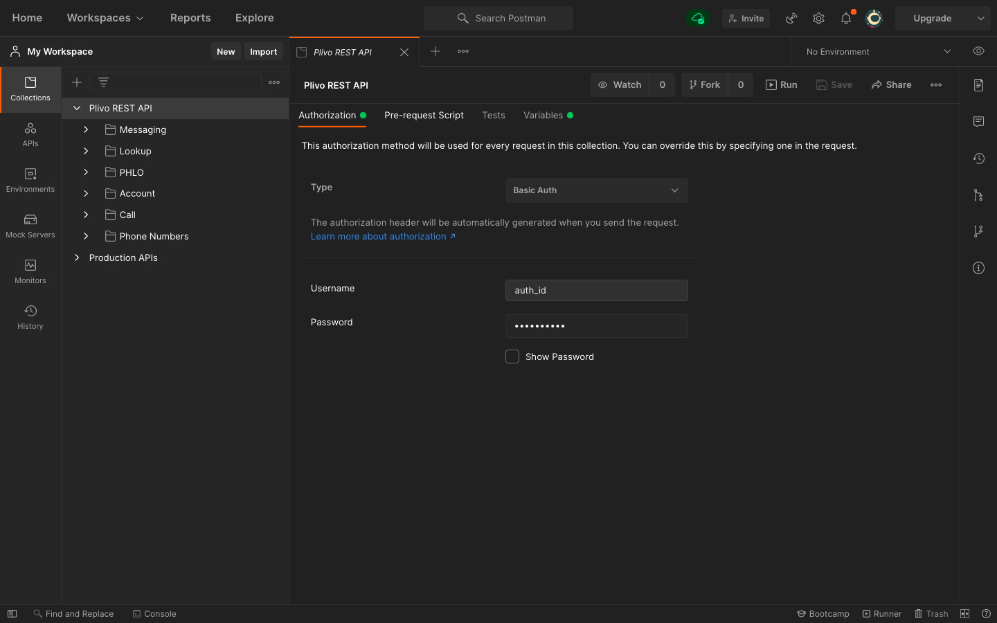 First, download and install Postman. You also need a Plivo account; if you don’t have one yet, sign up now. Next, click on the below buttonFork collection into your workspace
