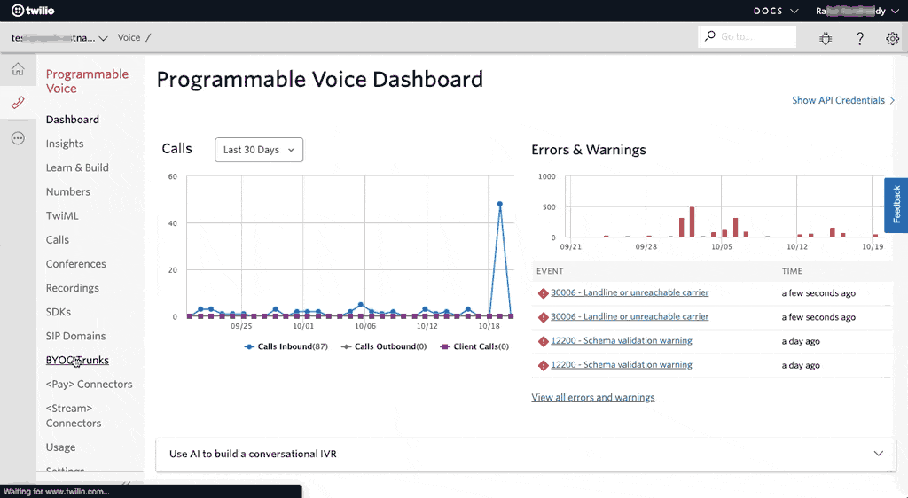 - Create a Twilio BYOC trunk on the Twilio platform