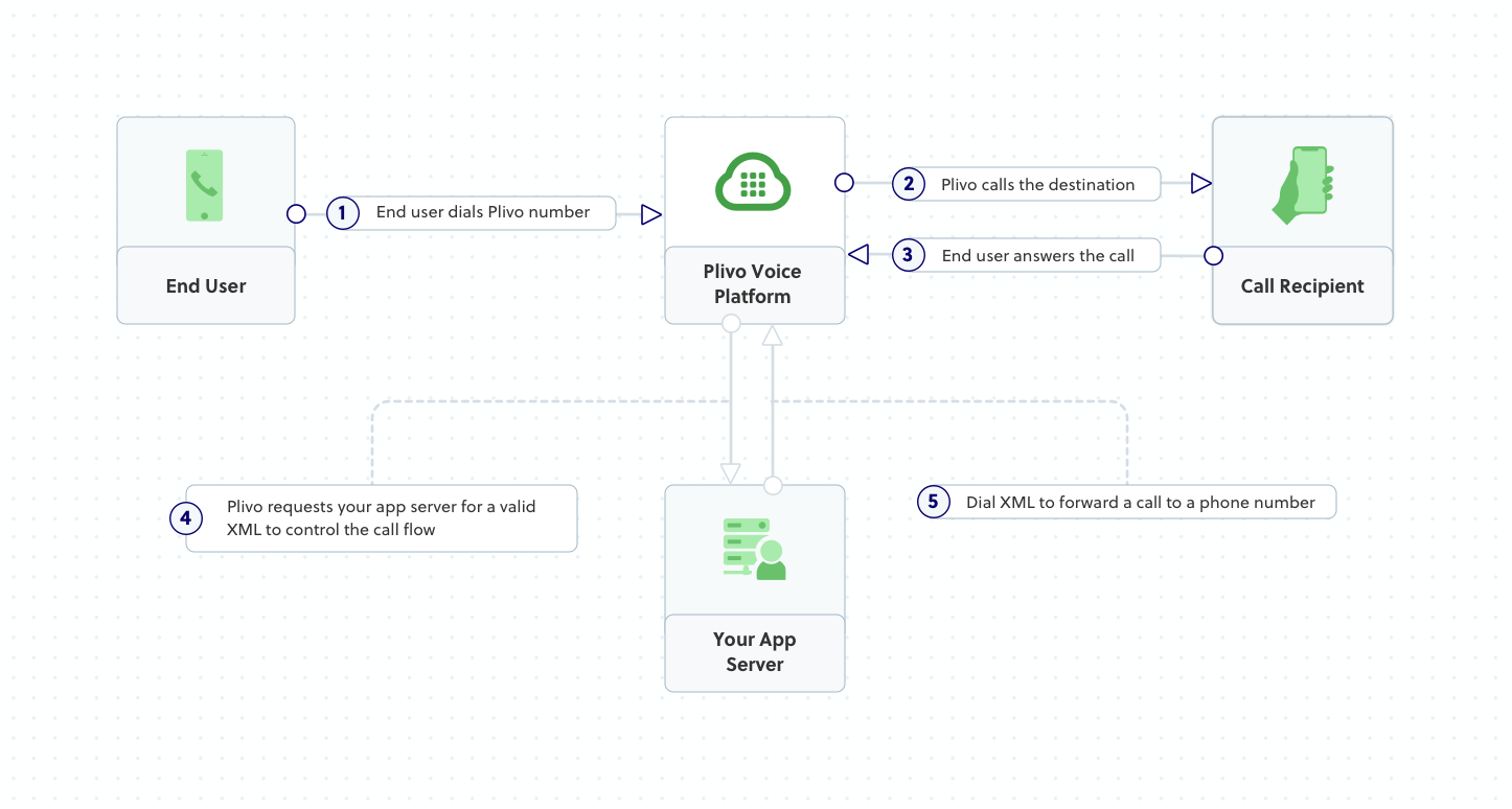 Make a call to your Plivo number using any phone.Forward an incoming call
